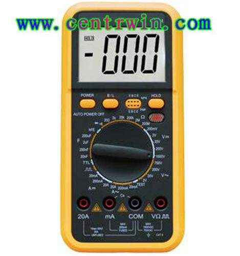 產品簡介: 不帶頻率 直流電壓:200mV/2V/20V/200V/1000V準確度:±(0.5%+3) 交流電壓:2V/20V/200V/750V準確度:±(0.8%+5) 直流電流:20mA/200mA/20A準確度:±(0.8%+10) 交流電流:20mA/200mA/20A準確度:±(1.0%+15) 電阻:200Ω/2kΩ/20kΩ/200kΩ/2MΩ/200MΩ準確度:±(0.8%+3) 電容:20nF/200nF/2uF/200uF準確度:±(2.5%+20) 二,管測試:有 三,管測試:有 通斷報警:有 低電壓顯示:有 火線判斷:有 數據保持:有 自動關機:有 背光顯示:有 功能保護:有 %震保護:有 自恢復保險:有 TTL測量:有 方波輸出:有 輸入阻抗:10MΩ 采樣頻率:3次/s 交流頻響:(40-400)Hz 操作方式:手動 ,顯示:1999 液晶尺寸:70×50mm 電源:9V (6F22) 機身顏色:機身-深灰 %震套-黃色 機身重量:426g(含電池) 機身尺寸:190×93.5×37mm 標準配件:表筆,電池,說明書,合格證,皮盒,鱷魚夾 標準內包裝:彩盒 外包裝尺寸:465×317×506mm 標準包裝數量:30臺 標準包裝箱毛重:26kg